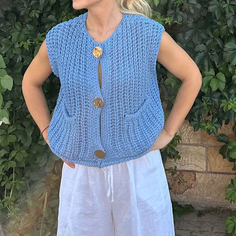 Design: Button Up, Oversized, Front Pockets, Oversized, Sleeveless, Vintage & Casual.