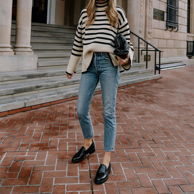 This color block stripes high neck knitted pullover comes in a soft, side slit, loose chunky knit with block stripes. The Tummy Hiding Slimming oversized knitted roll neck striped sweater is popular with cami, tank, pants, denim, jeans, leggings, scarves or dresses, and get wrapped up & cozy feel with any layers underneadh.