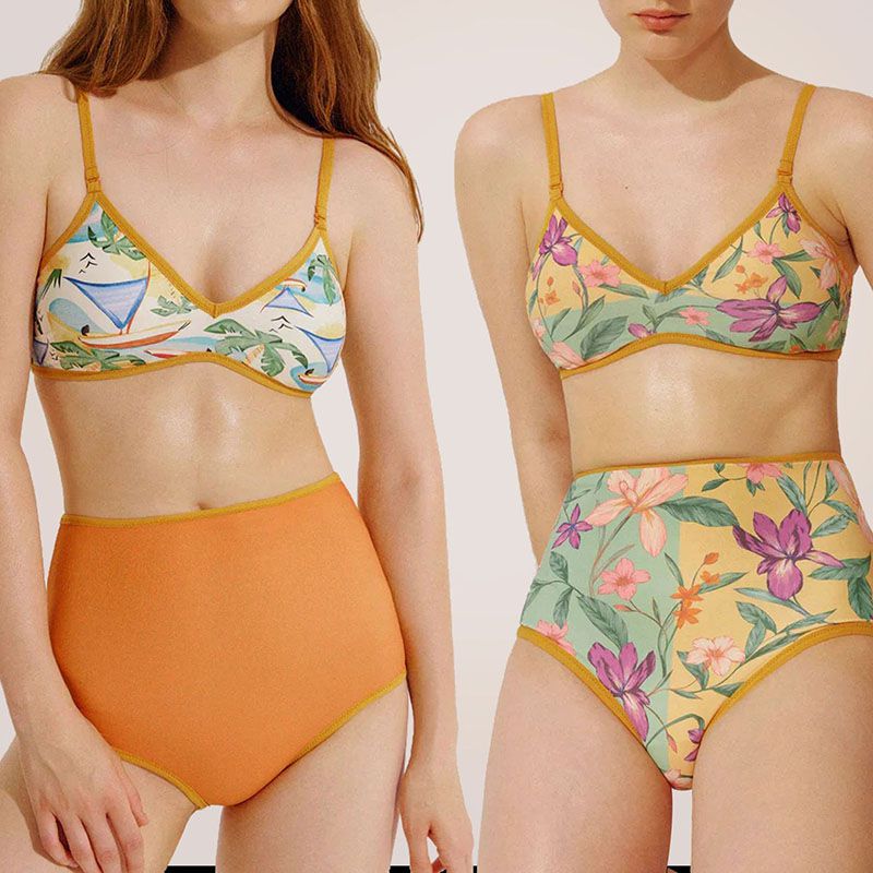 Design: Aesthetic, Floral, Ditsy Floral, V Neck, High Waisted Shapewear Swimming Wear For Beach & Water.